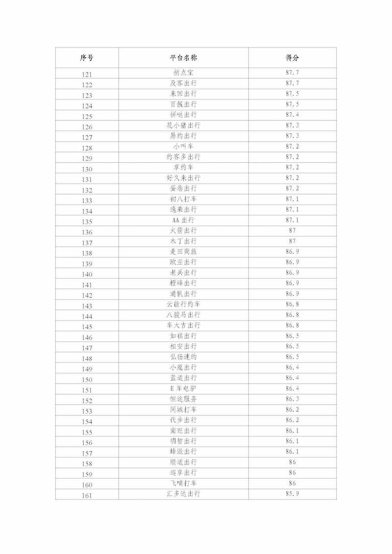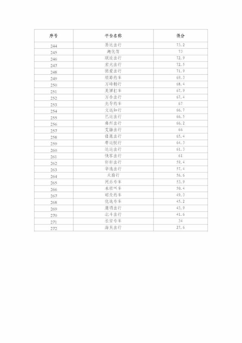 2025年9月,網(wǎng)絡(luò)預(yù)約出租汽車監(jiān)管信息交互平臺共收到272家網(wǎng)約車平臺公司傳輸?shù)臄?shù)據(jù),按數(shù)據(jù)完整性、規(guī)范性、及時性、真實(shí)性等指標(biāo)評分共100分計算,平均得分為89.9分,各網(wǎng)約車平臺公司數(shù)據(jù)傳輸質(zhì)量具體情況附后。