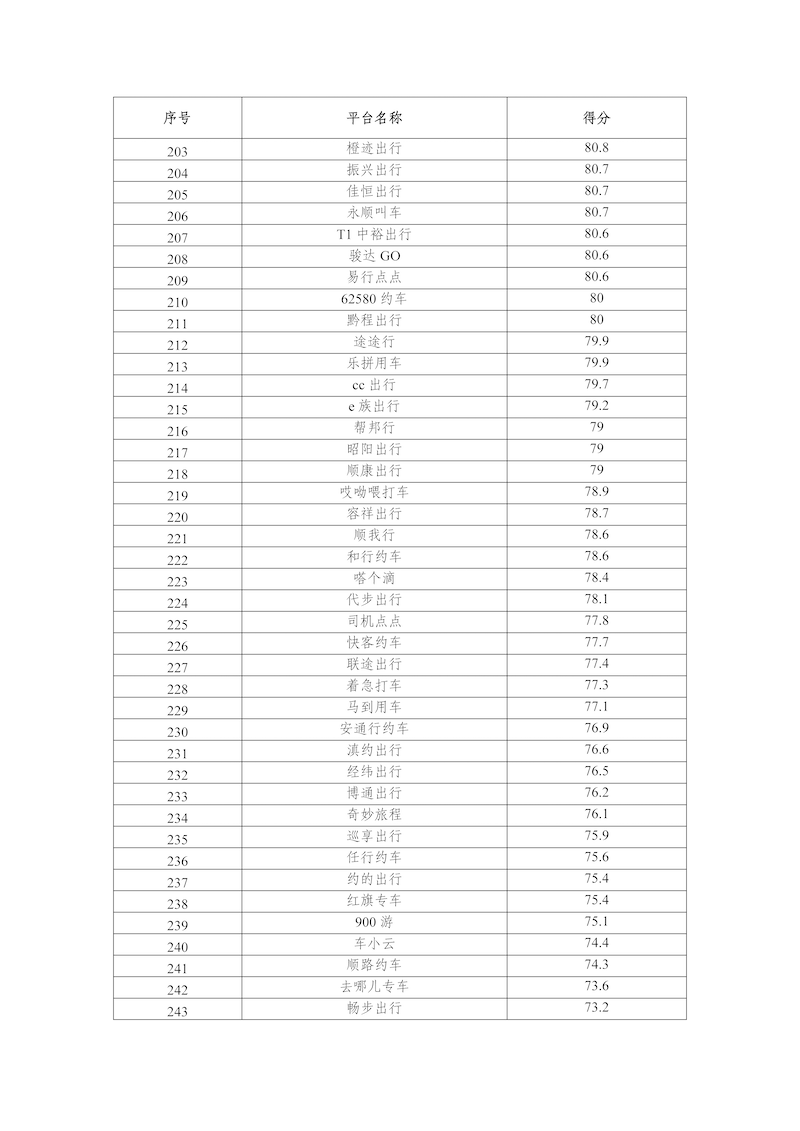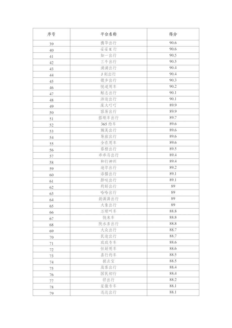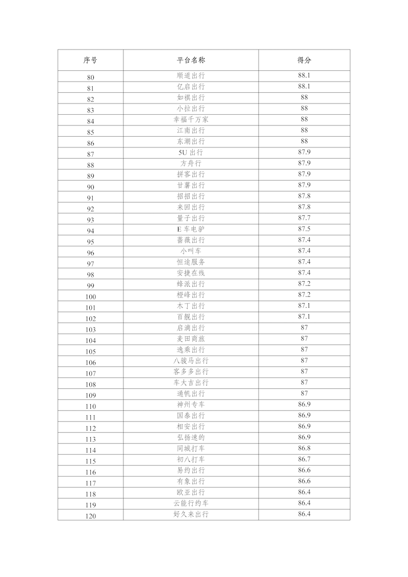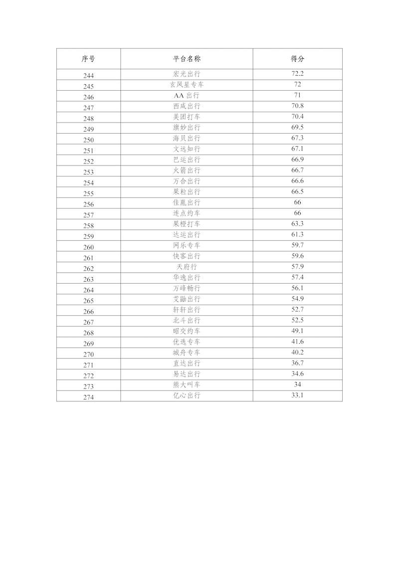 2025年10月,網(wǎng)絡(luò)預(yù)約出租汽車監(jiān)管信息交互平臺(tái)共收到274家網(wǎng)約車平臺(tái)公司傳輸?shù)臄?shù)據(jù),按數(shù)據(jù)完整性、規(guī)范性、及時(shí)性、真實(shí)性等指標(biāo)評(píng)分共100分計(jì)算,平均得分為88.0分,各網(wǎng)約車平臺(tái)公司數(shù)據(jù)傳輸質(zhì)量具體情況附后。